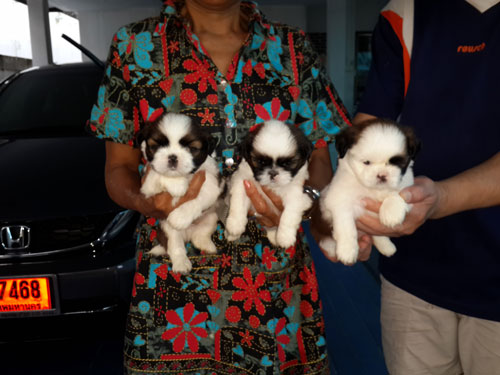 ลูกชิห์สุสวยๆ(ผู้และเมีย) เกรด A ชุดที่ 90 จากศูนย์รวมสุนัขบ้าน ลายยสวยๆ สีสันสวยงาม ขนนุ่มๆแน่นๆ น่ารัก เล่นเก่ง ร่าเริง แข็งแรง เลี้ยงง่าย ถ่ายพยาธิให้เรียบร้อยแล้ว สนนราคาเพียง 3,800 B. เท่านั้น สนใจสอบถามรายละเอียดได้ที่ Tel.085-074-0726 มารับเองได้ที่ ถ.รามอินทรา เขตบางเขน กรุงเทพฯ และมีบริการจัดส่งทั่วประเทศ (กันย์เจ้าเก่าครับ)