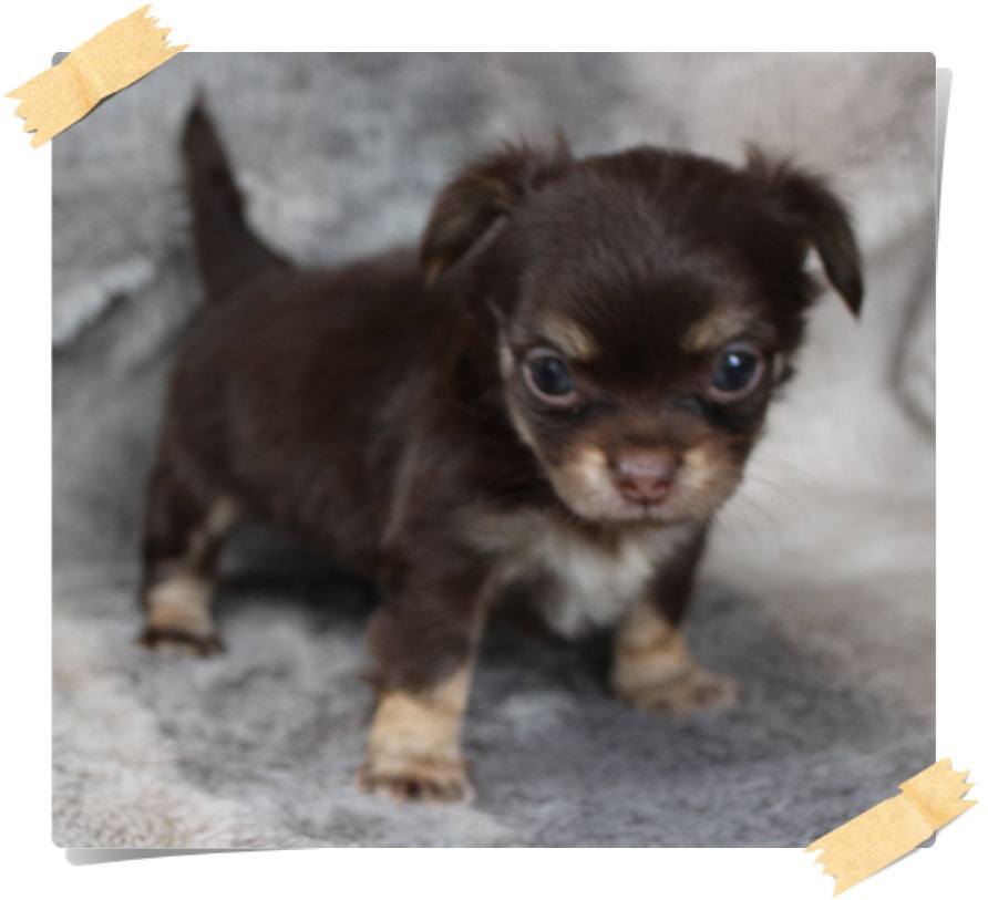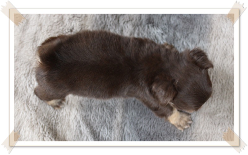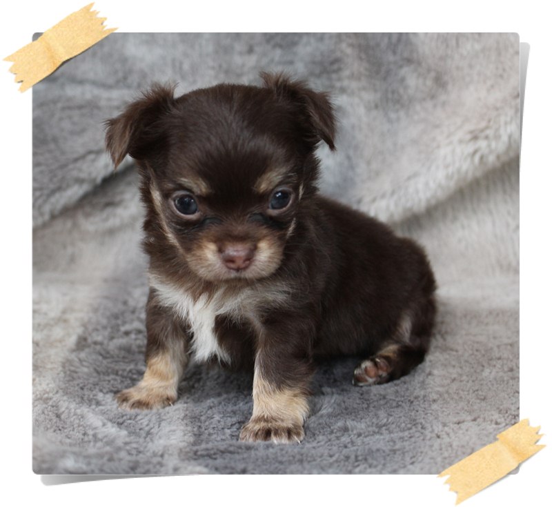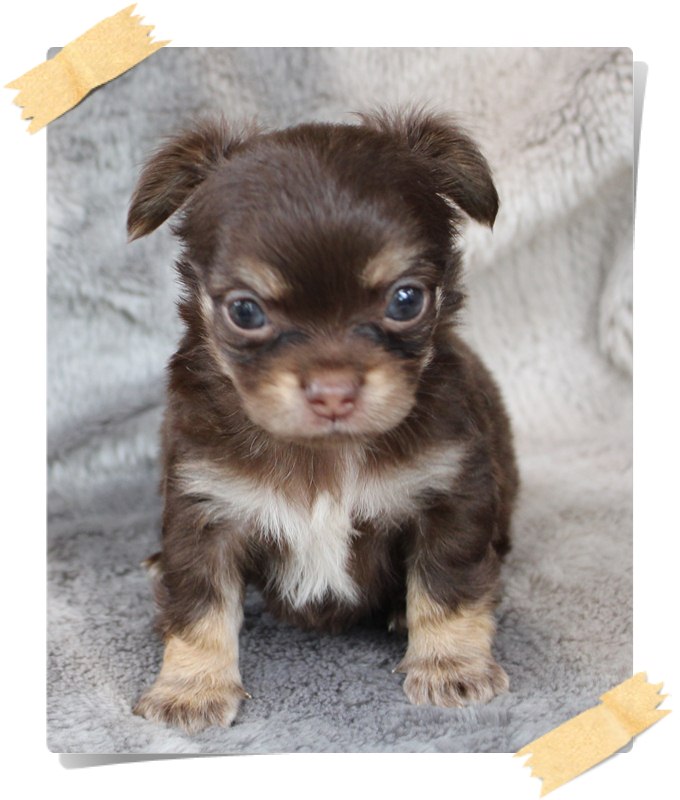 (ปิดการขาย)ชิวาวาขนยาวสีช็อคแทนเพศผู้p1 ขนดีมาร์คสวยไซร์เล็กสุขภาพแข็งแรงน่ารักจ้า