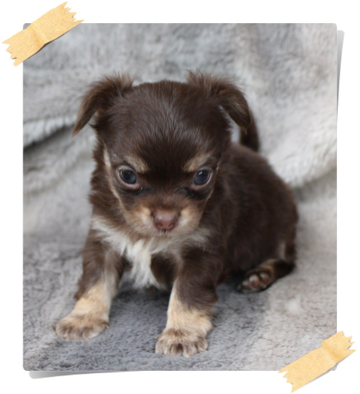 ชิวาวาขนยาวสีช็อคแทนเพศผู้p1 ขนดีมาร์คสวยไซร์เล็กสุขภาพแข็งแรงน่ารักจ้าวัคซินพร้อมถ่ายพยาธิก่อนส่งสนใจสอบถามเพิ่มเติมได้