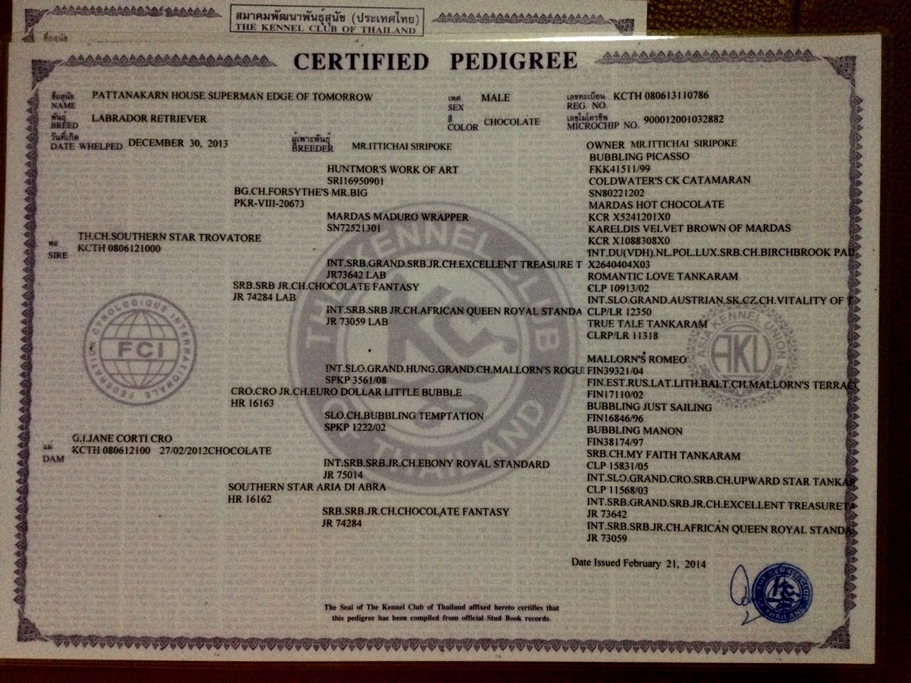 ประกาศขายลาบราดอร์ สีช็อคเพศผู้ อายุ10 เดือน เกรดประกวดสวยมากสายแชมป์จากยุโรป พ่อและแม่สุนัขนำเข้าจากยุโรปโครงสร้างดีมาก อารมณ์โชว์เยี่ยม สุนัขสมบูรณ์แข็งแรง ที่สำคัญสุนัขมีผลตรวจโรคประจำสายพันธ์ุจากเช่น EIC/CNM/PRA หากท่านใดมองหาลาบราดอร์สีช็อคสวยๆเห็นฟอร์มชัดเจนสนใจติดต่อ ภูเทพ