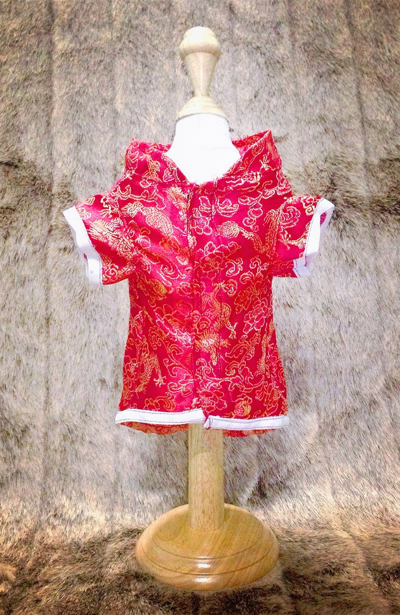 เสื้อกี่เพ้าสีแดงไซส์2-3 อก15นิ้ว ยาว10นิ้ว หรืออก39ซม. ยาว26ซม.ราคา220ส่งฟรีลงทะเบียนems+50