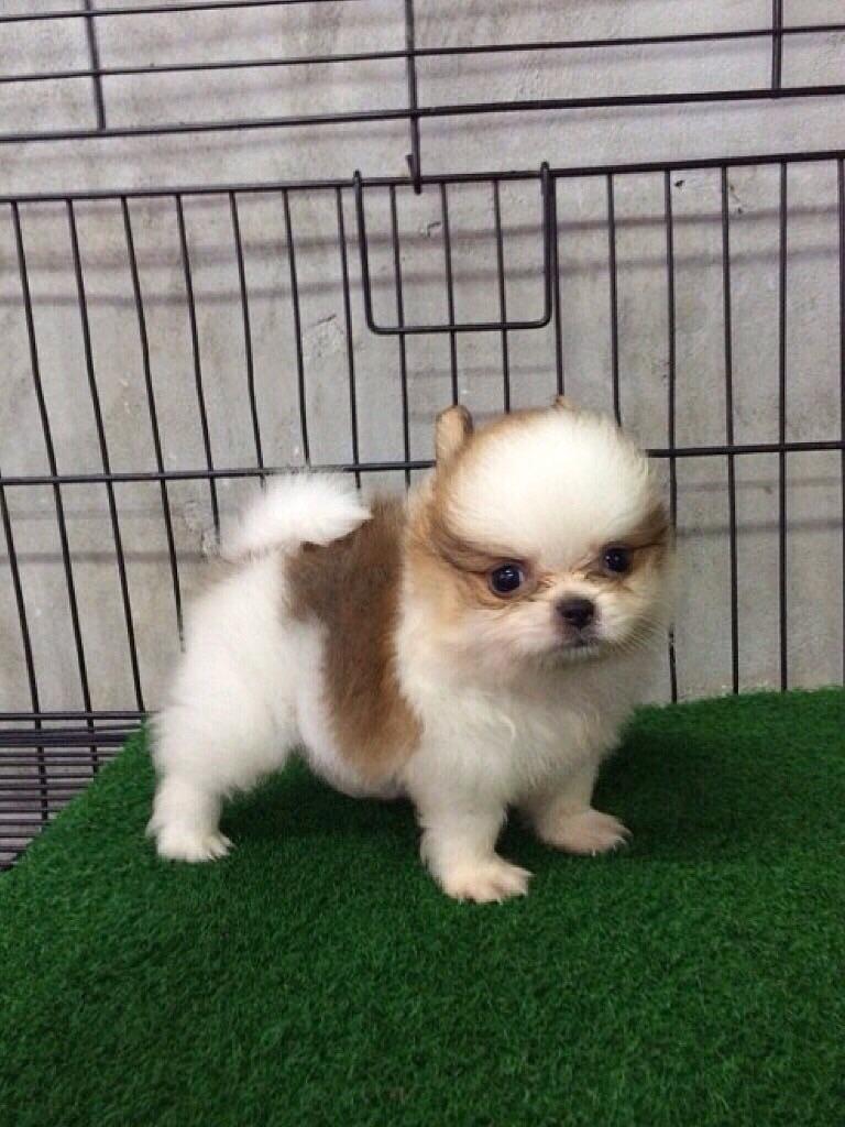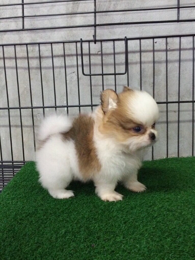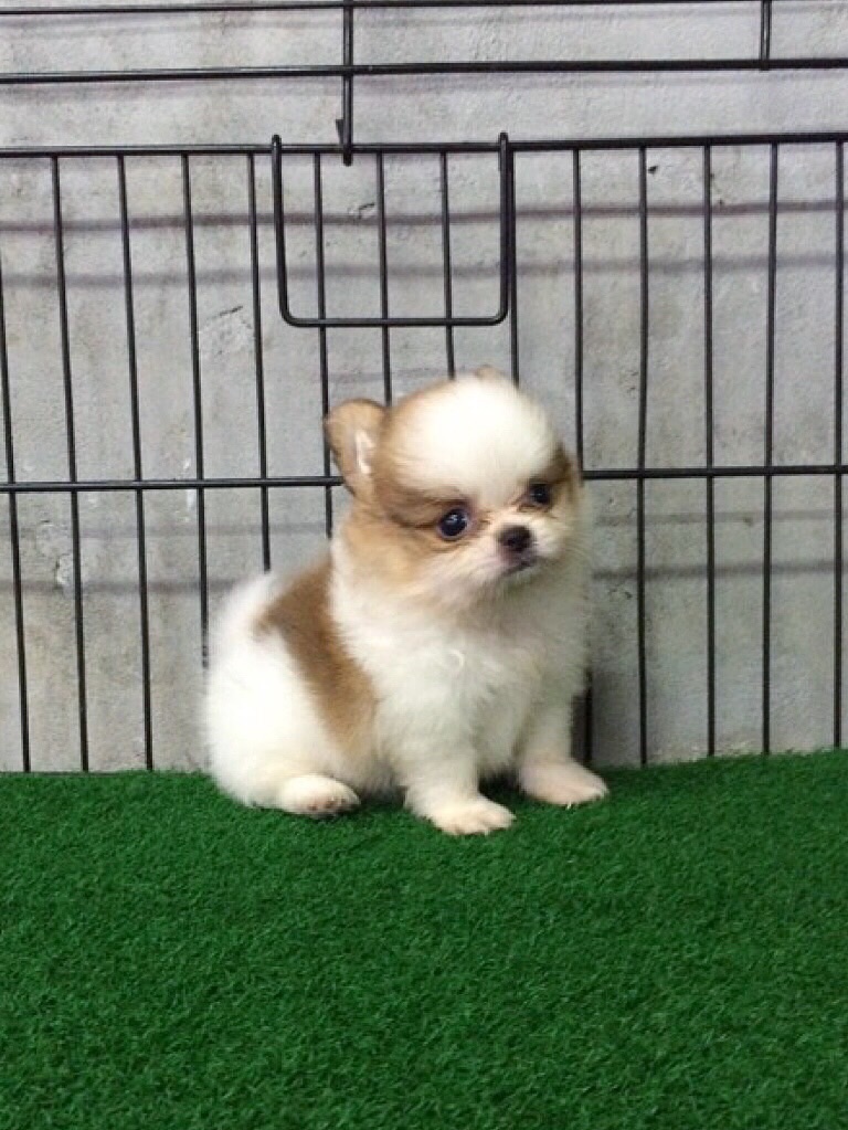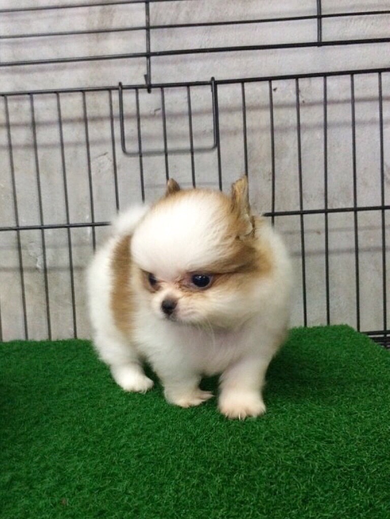 น้องปอมเมอเรเนี่ยน(Pomeranian) แฟนซี ขาว-น้ำตาล เพศผู้ ฟอมดี ขนแน่น พร้อมย้ายบ้านแล้วจ้า