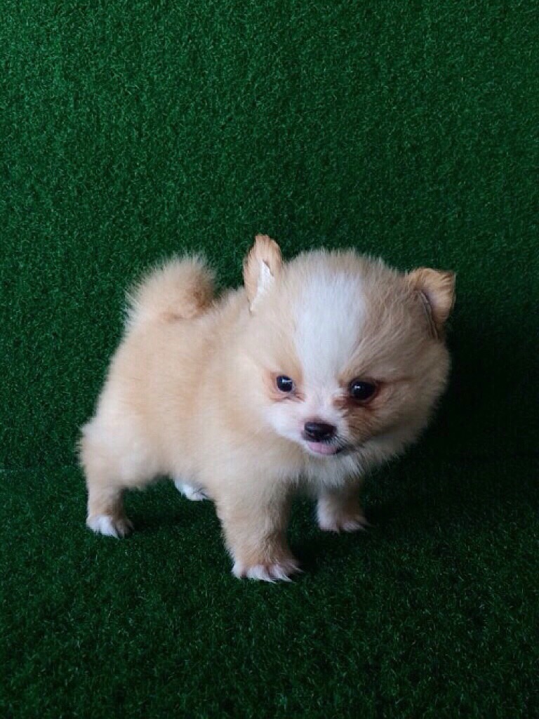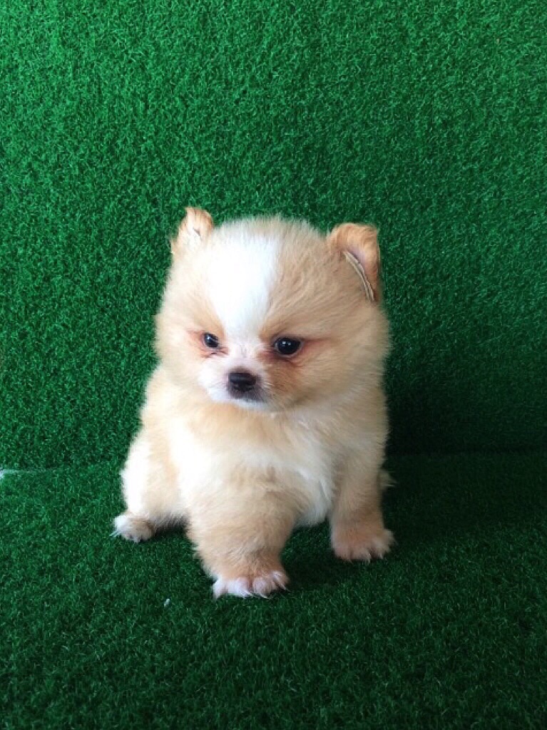 ลูกหมาปอมเมอเรเนี่ยน สีครีมหน้าขาว เพศชาย อายุ2เดือน ฟอมดี ทรงสวย หน้าสั้น ขนแน่น พร้อมย้ายบ้านแล้วค