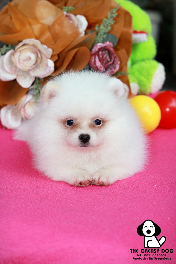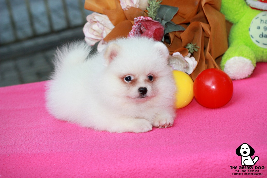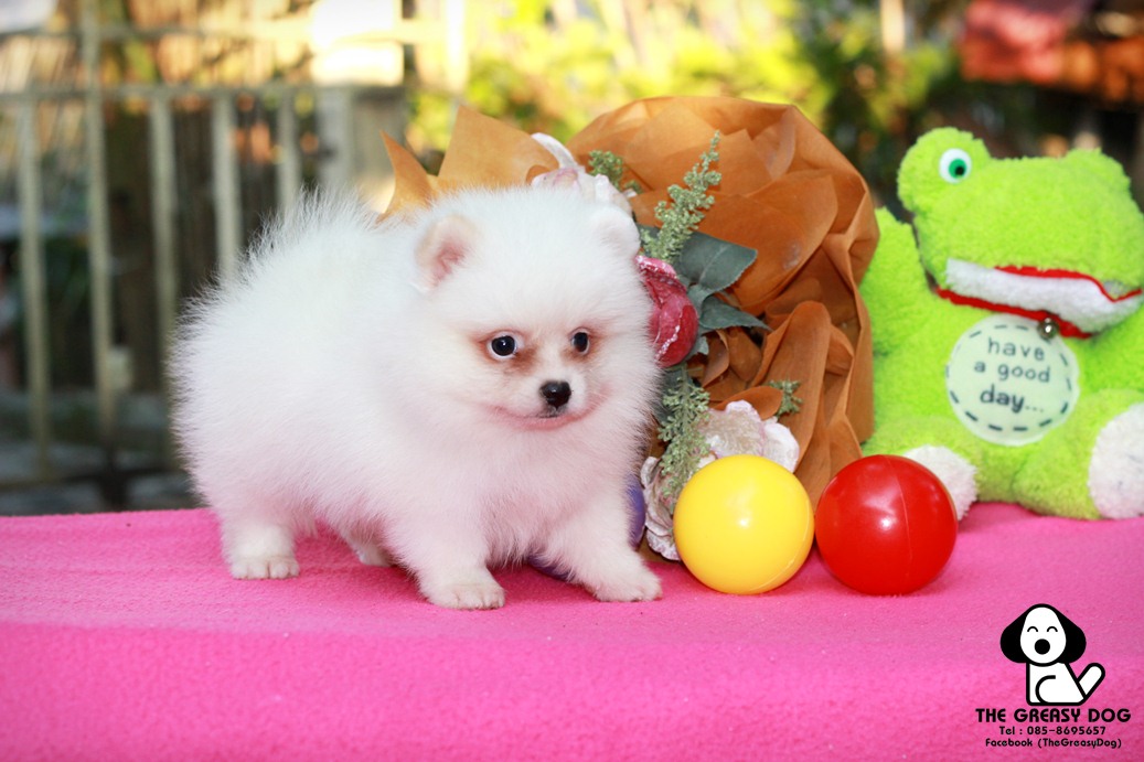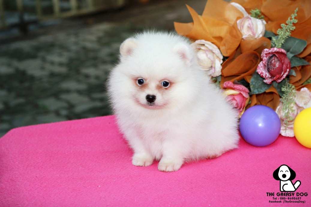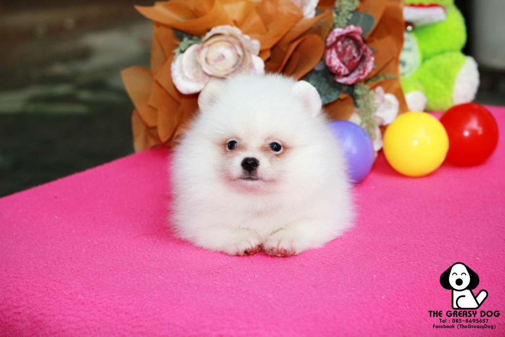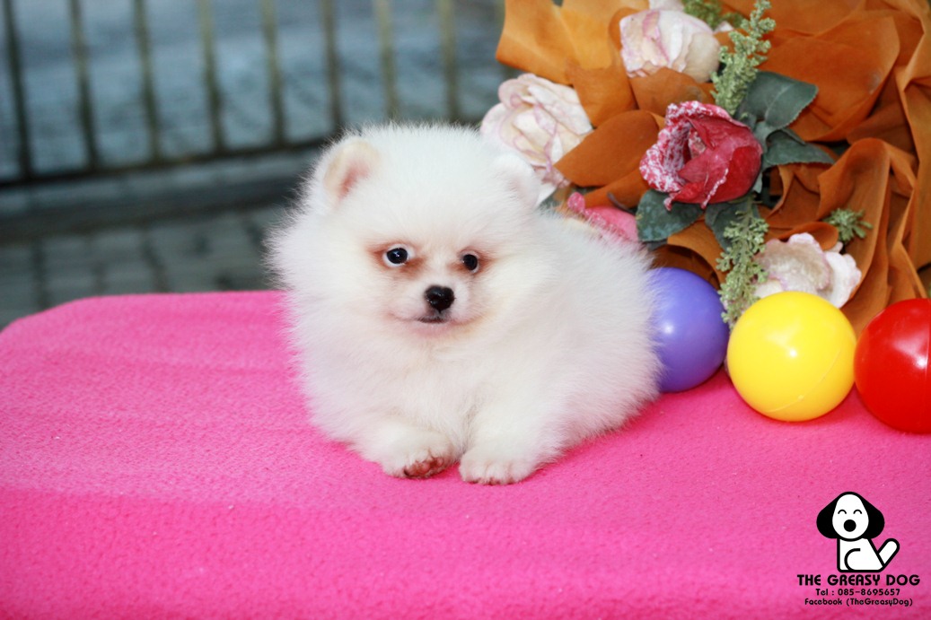 THE GREASY DOG - (G193) ปอมเมอเรเนียน ด.ช.ลาเต้ สีขาว เพศผู้ เกรดโชว์