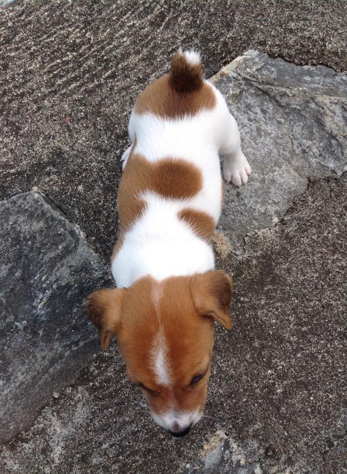 ขายลูกแจ็ครัสเซลลล์ เพศผู้ อายุ 1 เดือน มาร์กหน้ากากเต็ม ลายลูกวัว