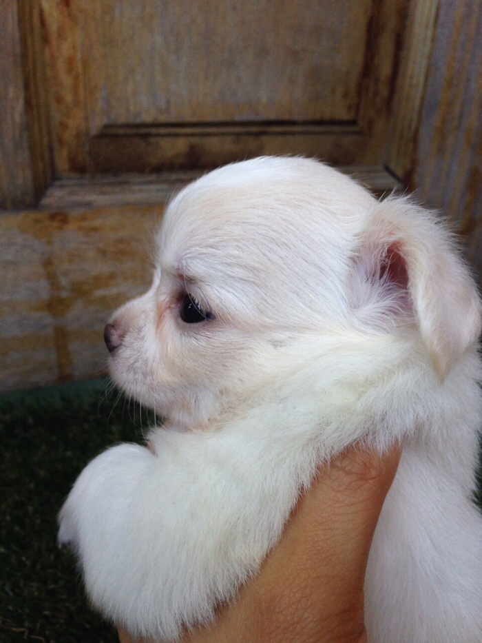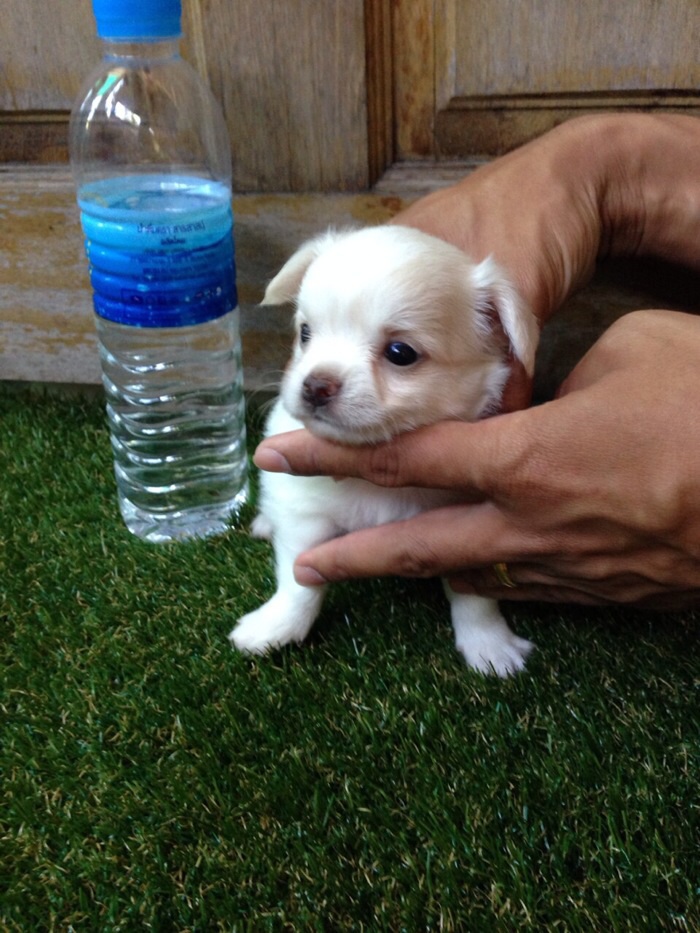 เปิดจองลูกสุนัขชิวาวาแท้ ขนยาว สีขาวน้ำตาลอ่อนๆ เพศผู้