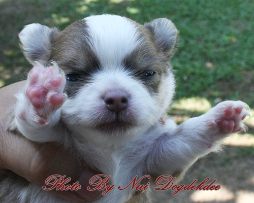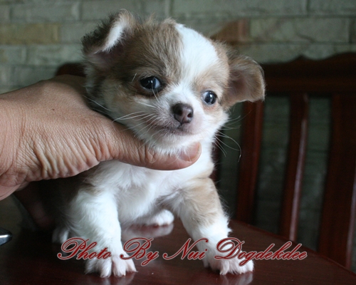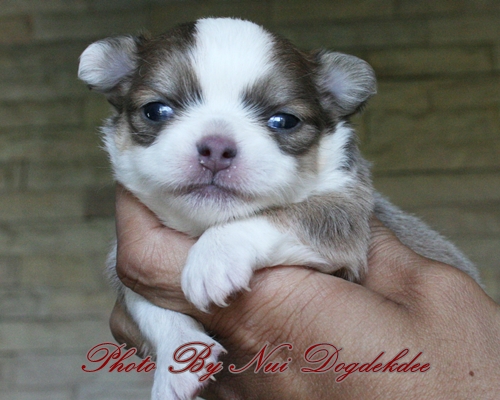 ขายชิวาวาขนยาวสีเทา เพศผู้ หน้าสั้นมาก