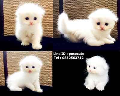 Scottish Fold สีขาว เพศเมีย หูเล็กพับ ขนยาวแน่น หน้าแบ๊ว แสบซ่าสุดๆ
