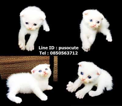 Scottish Fold สีขาว เพศผู้ ตาสีฟ้า หูพับ หน้าแบ๊วๆ ฉลาด ขี้อ้อน