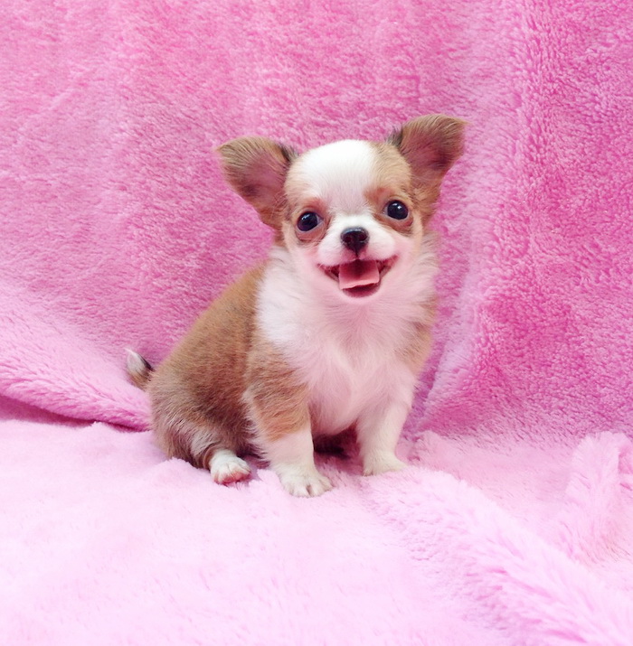 "น้องน้ำหวาน" ชิวาวาเพศเมียขนยาวสีแฟนซี หัวโตหน้าหักปากสั้นน่ารักมาก ขาสั้นหุ่นสวย ไซด์เล็ก เพดสมาคม