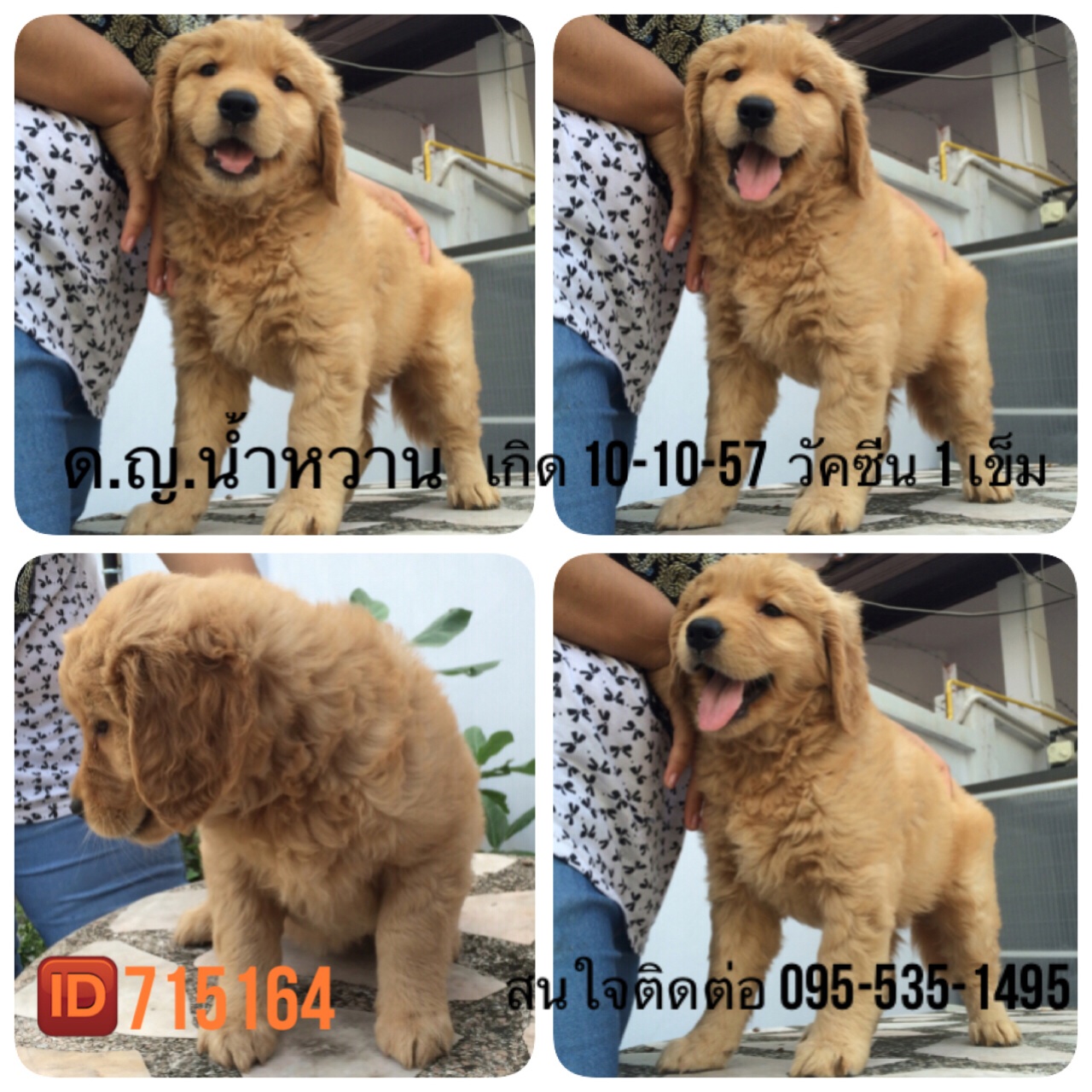 happy my dogs farm จำหน่ายลูกสุนัขคุณภาพ ทางฟาร์มดูแลเอาใจใส่ รักสุนัขทุกตัวเป็นอย่างดี ใช้อาหารเกรดซุปเปอร์พรีเมี่ยม วัคซีนครบ เพื่อคุณภาพของลูกสุนัขที่ดีเยี่ยม สอบถามเข้าชมฟาร์มได้นะคะ เวลา 10:00-17:00 น. ฟาร์มตั้งอยู่ที่ นนทบุรี สนใจติดต่อ โทร :095-535-1495 LineID : 715164 พันธุ์สุนัข ชิสุ,โกลเด้น รีทริฟเวอร์,ปอมเมอเรเนี่ยน,ไซบีเรียน ฮัสกี้,อลาสกัน มาลามิวท์ มีใบรับรองสายพันธุ์จากสมาคมพัฒนาพันธุ์สุนัขแห่งประเทศไทยค่ะ