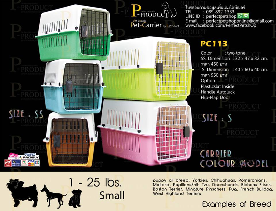 Pet Carrier PC113 สามารถนำสัตว์เลี้ยงเดินทางโดยการขนย้ายทางอากาศได้เพราะ Pet Carrier ผ่านมาตรฐานขนส่งท่าอากาศยานสากลใช้ได้กับทุกสายการบินทั่วโลก Pet Carrier กล่องใส่สัตว์เลี้ยงเดินทางมาตฐานสากลแต่ราคาไทยๆมีให้เลือกด้วยกัน 5 size เหมาะสำหรับสัตว์เลี้ยงทุกประเภทตามขนาดและความเหมาะสมกล่องเดินทางสัตว์เลี้ยงคุณภาพจาก P-PRODUCT