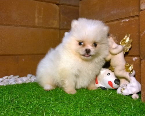 ปอม เพศผู้ ไซส์เล็กสีขาว ขนฟูๆ เกรดเลี้ยงเล่น ราคา 6500 ค่ะ พร้อมรับค่ะ