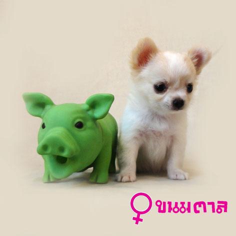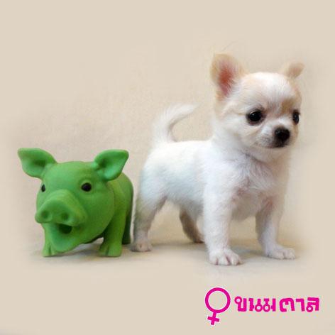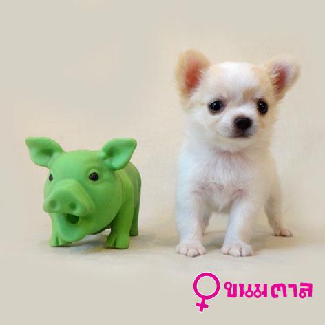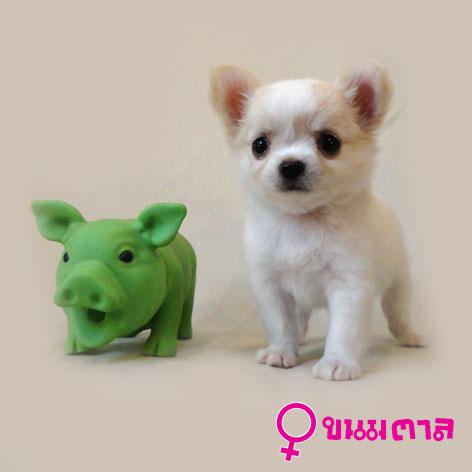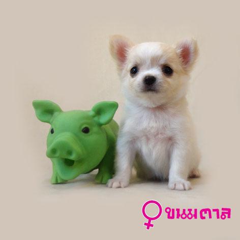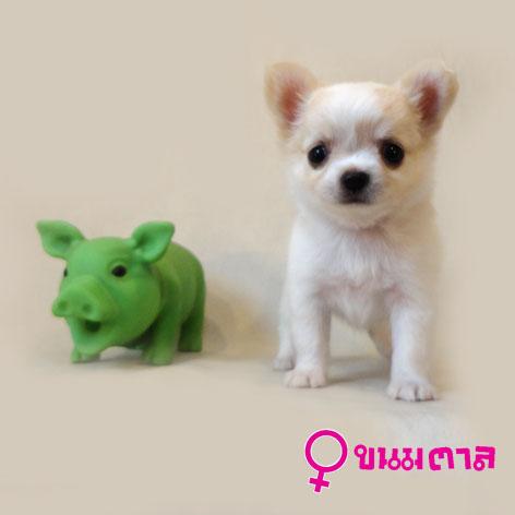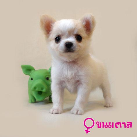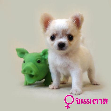ชิวาวาขนยาวเพศเมีย สายญี่ปุ่นหัวโต มาร์คกิ้งชัด สีแฟนซี่ ขาว–ครีม