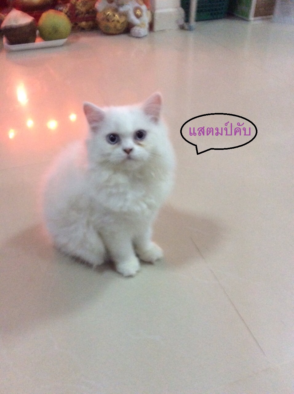ตัวที่สามคือ พี่แสตมป์ แมวตัวผู้ ตาสีฟ้า อ่อนโยน ขี้เล่น