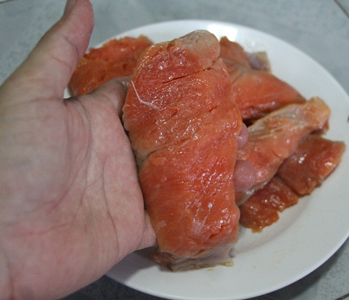 เนื้อแดงล้วน ติดหนัง (ชิ้นเล็ก) ราคา กิโลกรัมละ 150 บาท (สินค้าหมดชั่วคราว)
