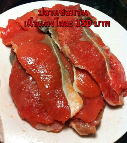 เนื้อแดง + เนื้อติดมัน + ท้องปลา ราคา กิโลกรัมละ 100 บาท