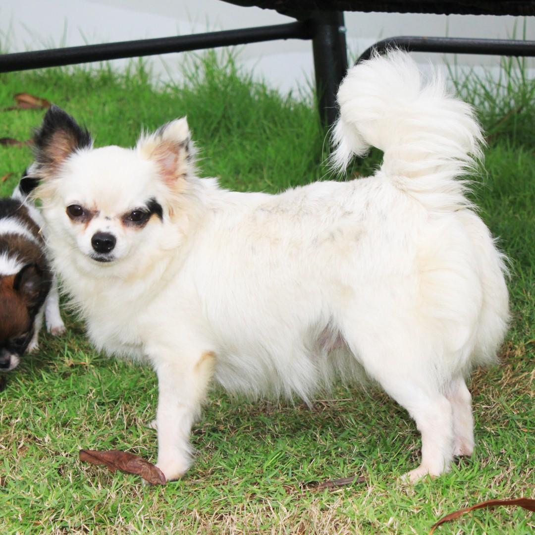 น้องเร็นจิ ชิวาวาขนยาว แฟนซีขาว ดำ มีคิ้ว รับประกันสุขภาพ พร้อมใบเพ็ดเต็มใบ