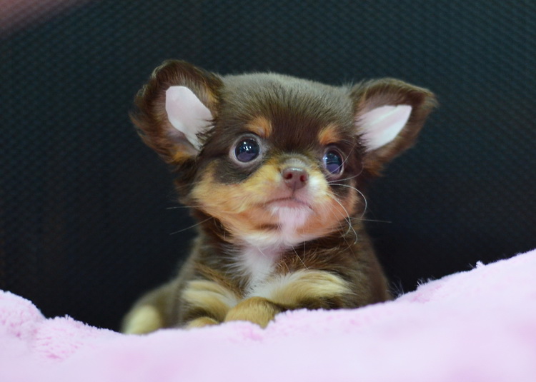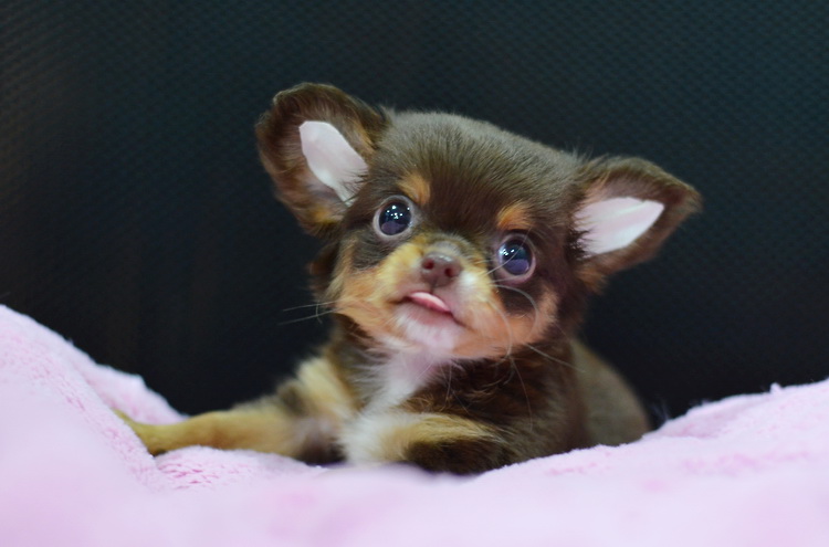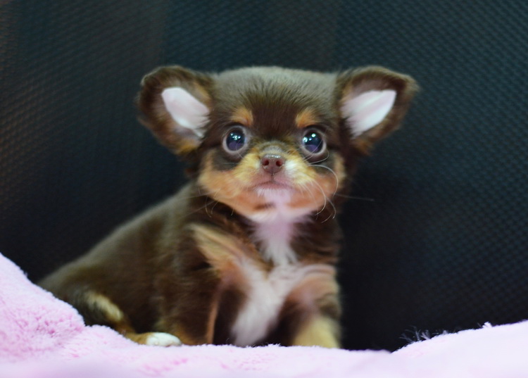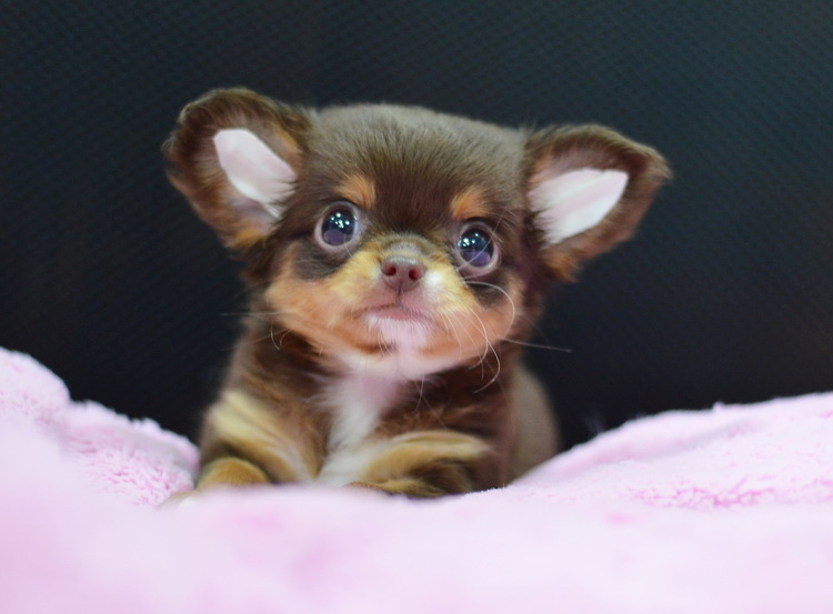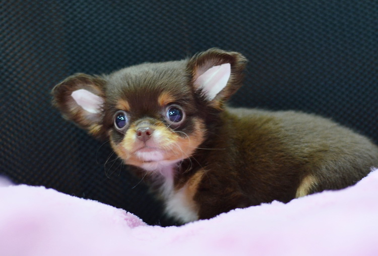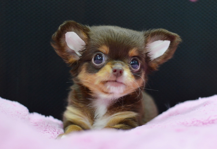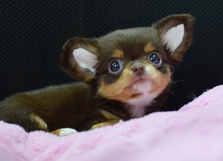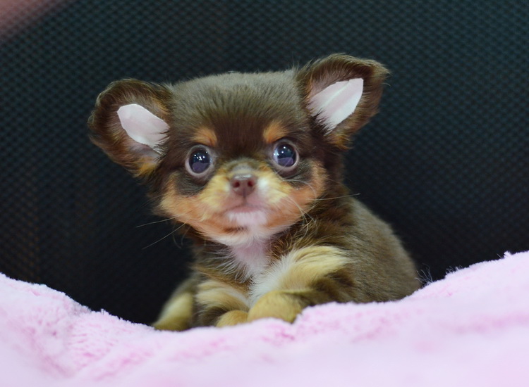 "น้องจูซซี่" ชิวาวาเพศเมียขนยาวสีชอคโกแลตแทน หน้าสั้นน่ารัก ตาโตสวยมาก