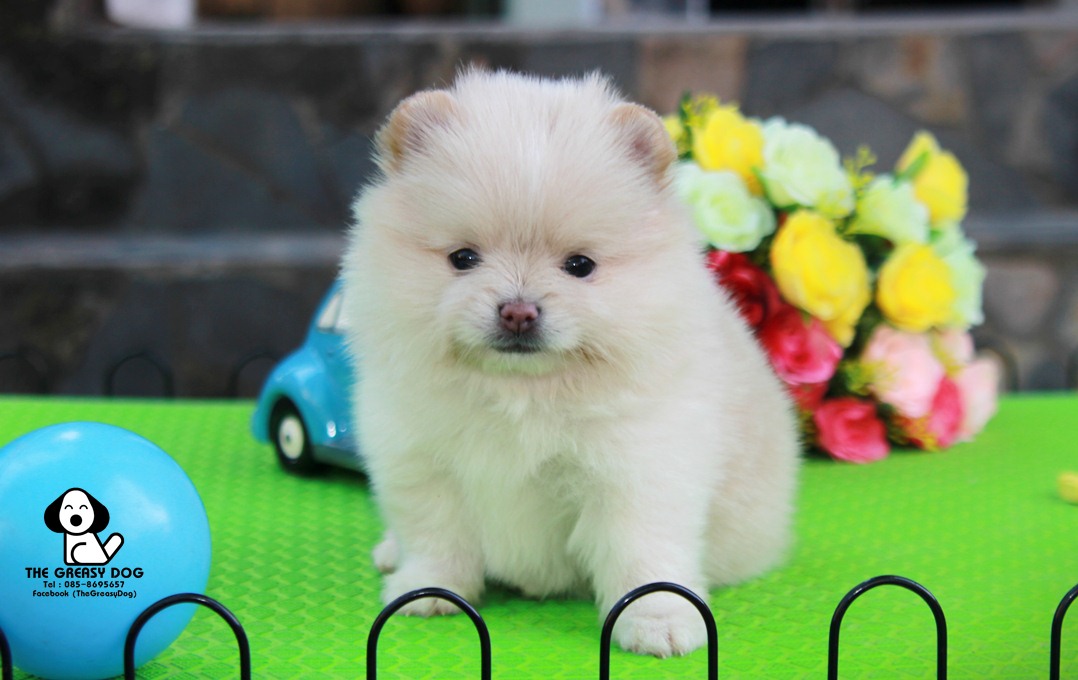 THE GREASY DOG - (G204) ปอมเมอเรเนียน ด.ญ.นิวเยียร์ สีครีม เพศเมีย หน้าหมี เกรดสวย