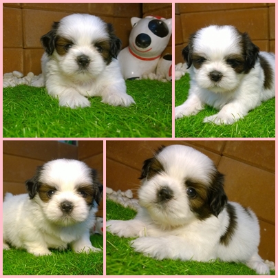 รูปที่ 3 ชิสุ เพศผู้ สีขาวน้ำตาลเข้ม หน้าบี้ น่ารัก