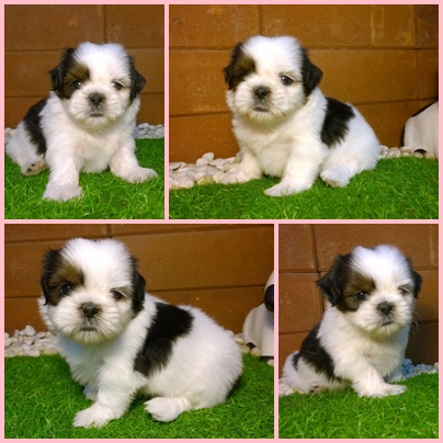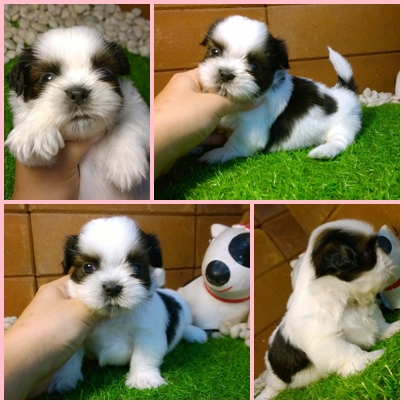 รูปที่ 2 ชิสุเพศผู้ สีขาวน้ำตาลเข้ม หน้าบี้ น่ารัก