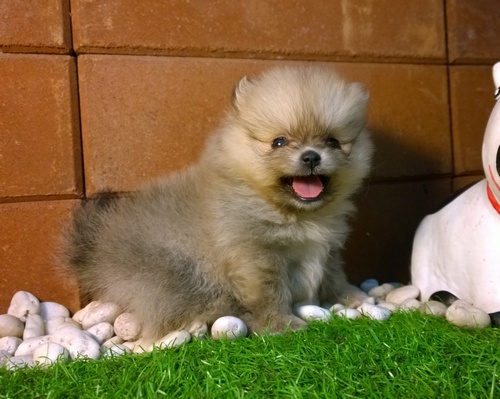 รูปที่ 1-3 ปอม เพศเมีย สีส้มเทา ตัวเล็ก ขาสั้นตัวสั้น น่ารัก ซนที่สุด
