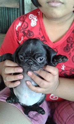 ขายลูกปั๊ก 50 วันสีดำ เพศเมีย 1 ตัว เตี้ย อ้วน สั้น
