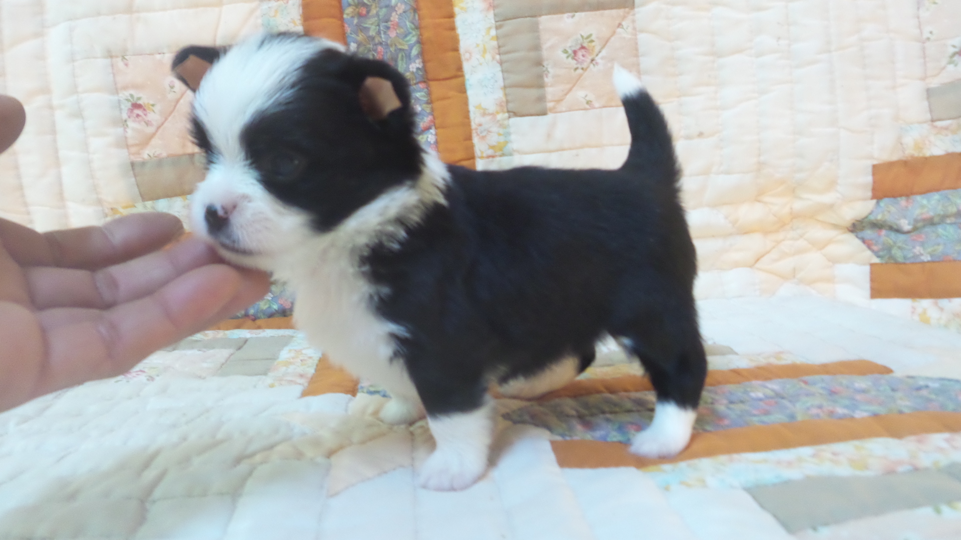 ชิวาว่าขนยาวสีแบลคแทนเพศผู้ มาร์กกิ้งเป๊ะ สีขาวรอบคอ ถุงเท้าขาวสี่ข้าง