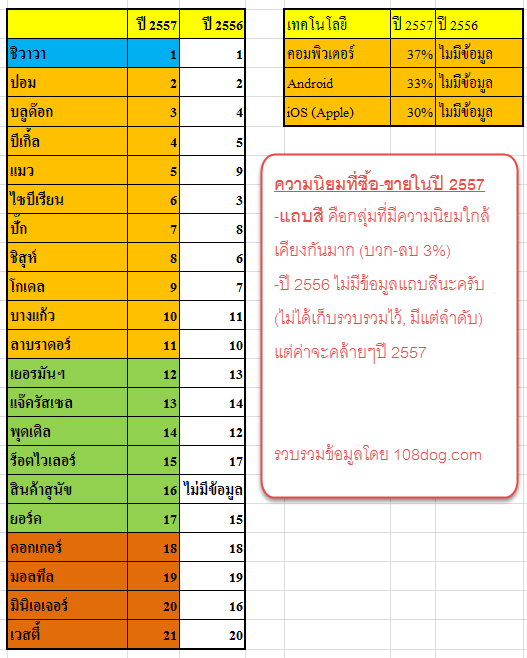 ลำดับ สุนัขที่นิยมซื้อ-ขายในปี 2557