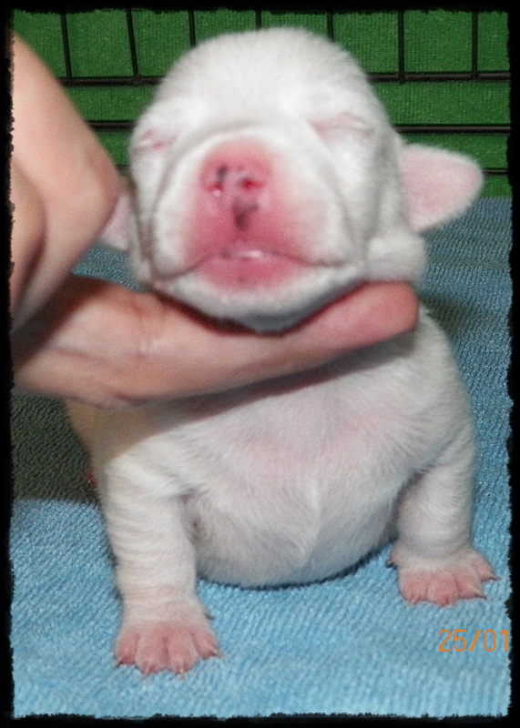 ตัวที่ 2 เพศผู้ ขาวล้วนมีแต้มที่หู ขาสั้น ล่ำ