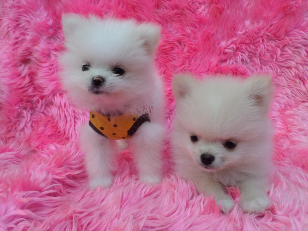 ซ้าย ปอมขาวไซส์จิ๋วๆ หน้าสั้นๆตัวเล็กๆ เพศผู้ ราคา13500บาท ไม่มีใบเพ็ด