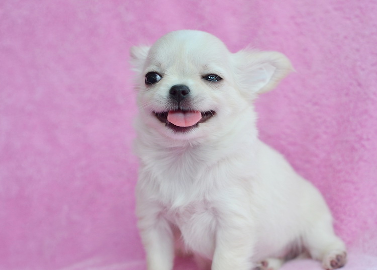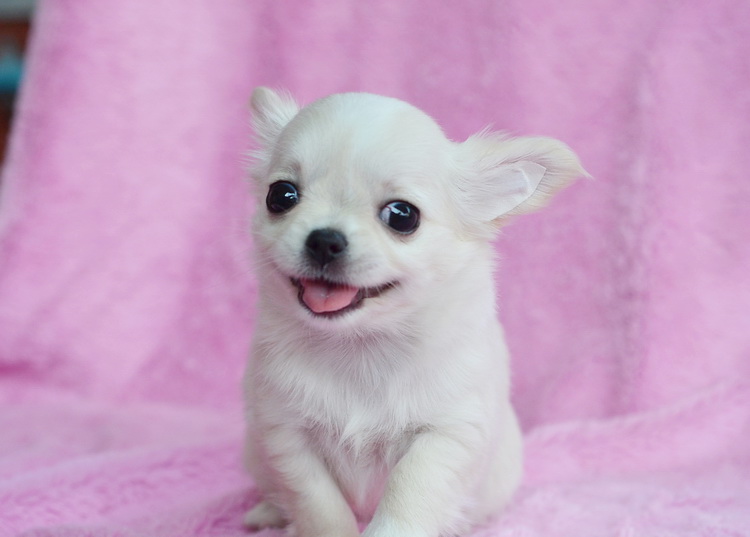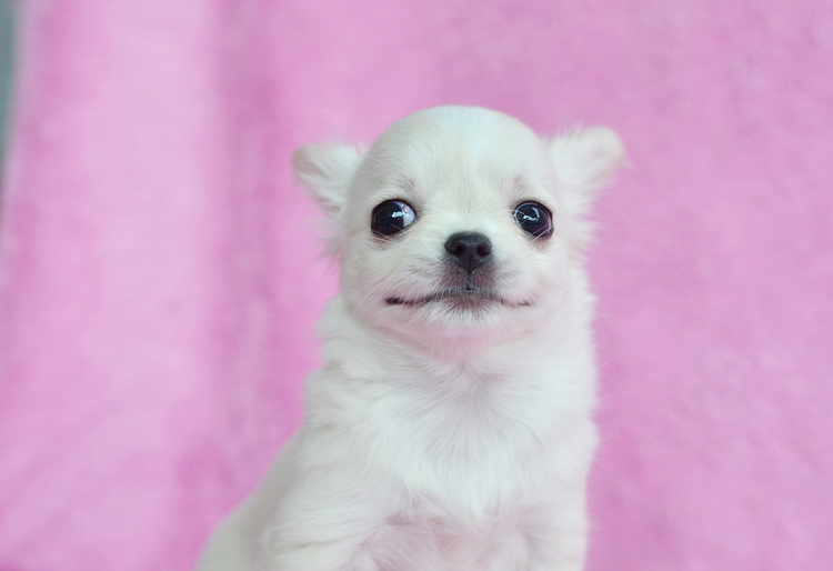 "น้องแมวน้ำ" ชิวาวาเพศเมียขนยาวสีครีม หัวโตหน้าหักปากสั้น จมูกชมพูตาฟ้า ขนแน่นมาก ขาสั้นหุ่นสวย