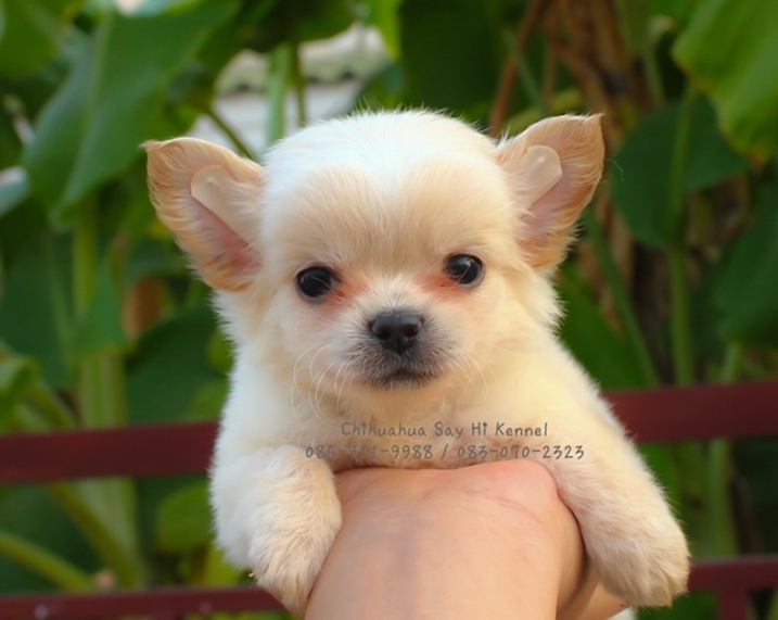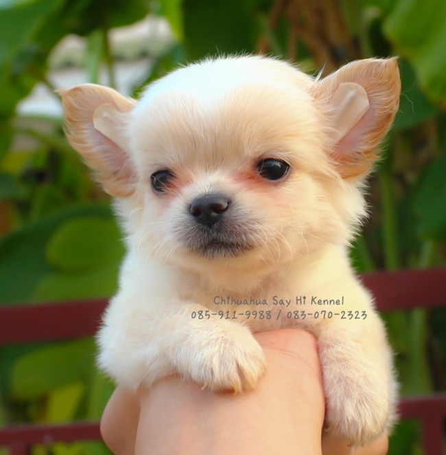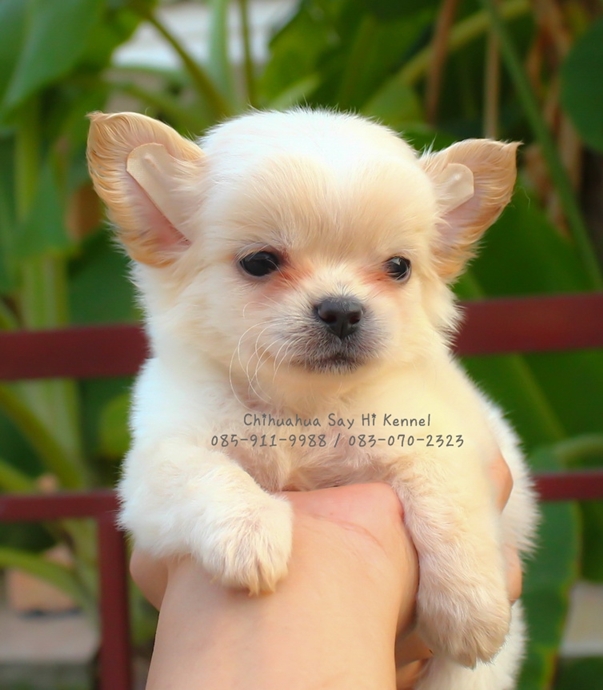 เด็กชายกันดั้ม สีครีม ขนยาว หัวใหญ่ ไซส์เล็กๆ By Chihuahua Say Hi Kennel