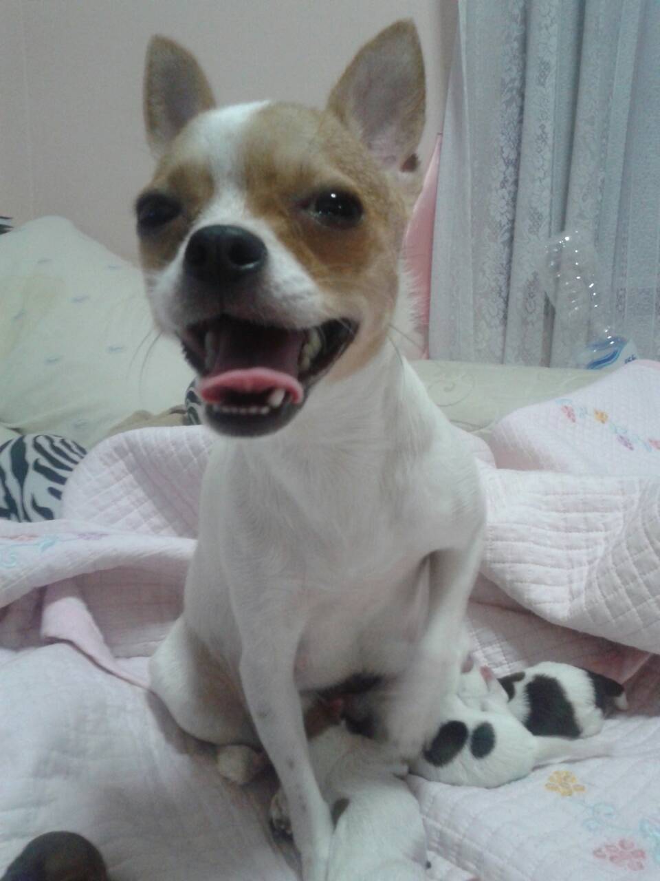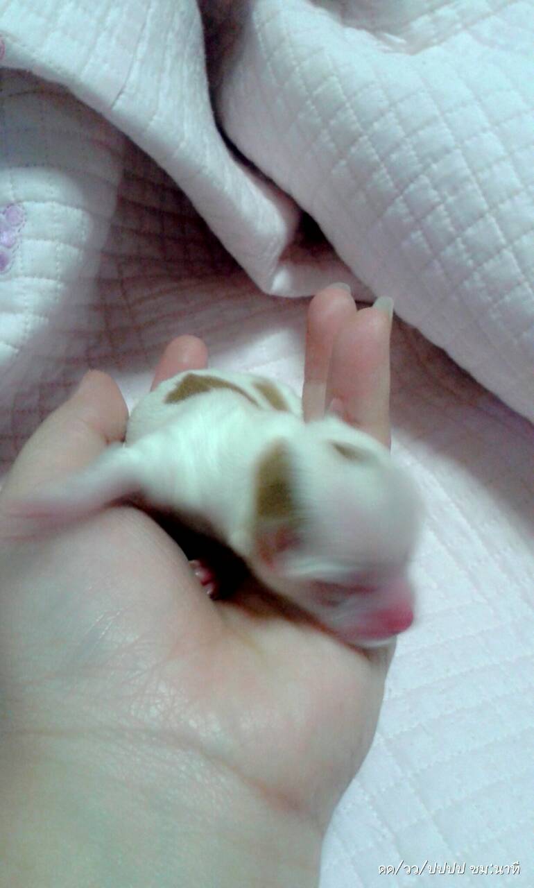 พ่อเป็นชิวาวาขนขาวสีแบล็คแทน แม่ขนสั้นสีขาวน้ำตาล