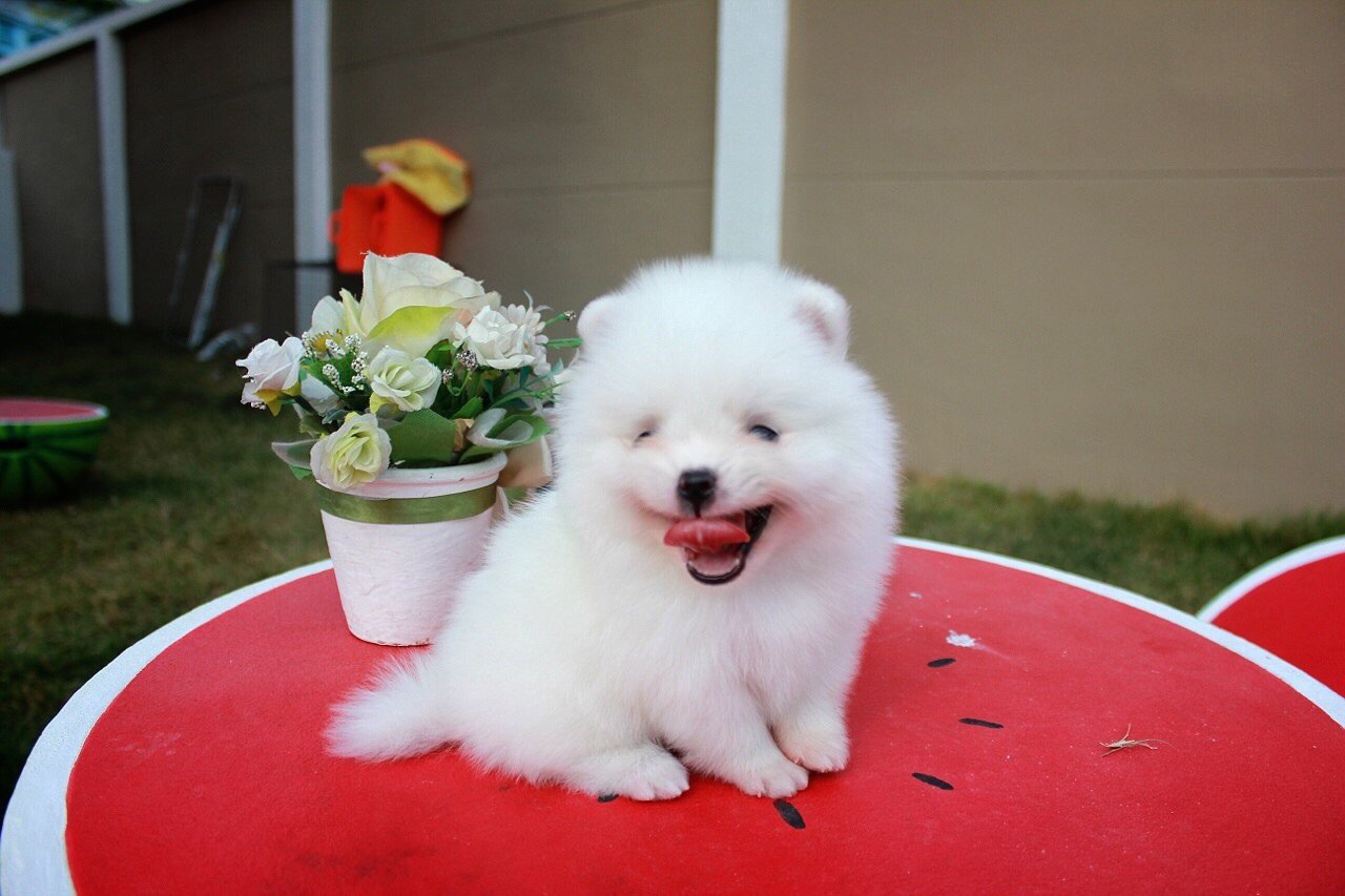 จำหน่ายลูกปอมเมอเรเนียน สีขาว เพศผู้-เมีย หน้าหมี ขนแน่น พร้อมใบเพ็ดดีกรี