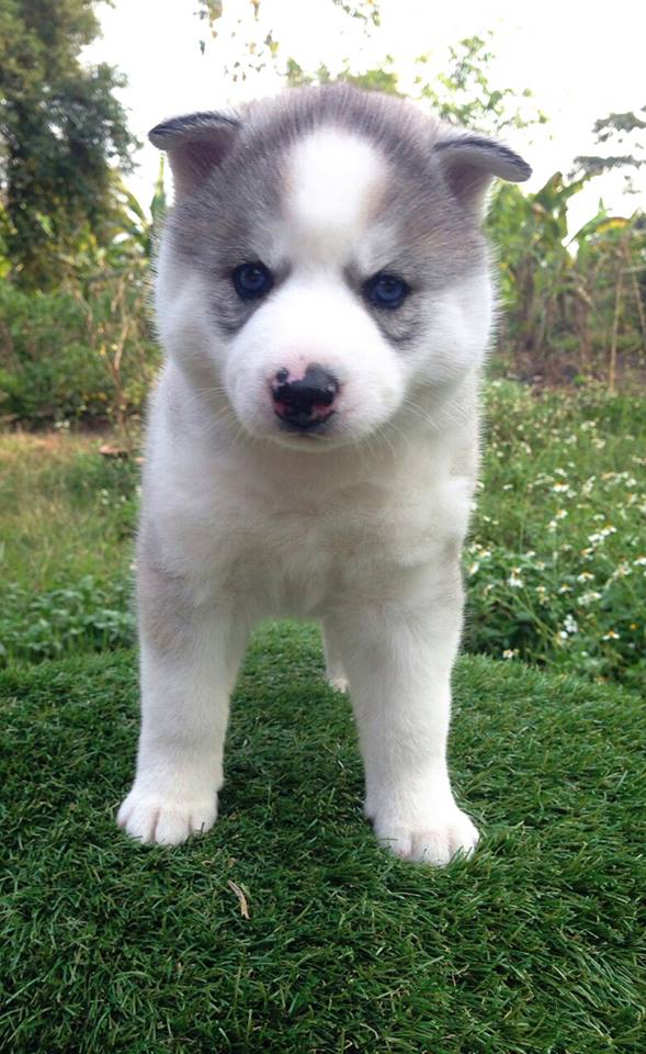 น้องหมาไซบีเรียน เพศเมีย สีขาวเทา ตาฟ้าคู่ น่ารัก สุขภาพแข็งแรง ราคาไม่แพง พร้อมจัดส่ง