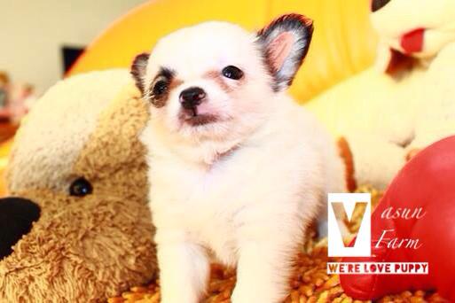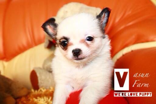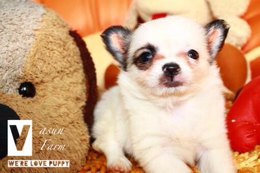 Vasun_farm ขอเสนอ ชิวาวา ขนยาว เพศ ผู้ สี ขาว-น้ำตาลเทา แสน ตั๊ลล้าก