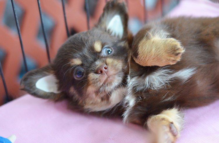 ชิวาวาขนยาวสีชอคแทน หัวโตหน้าสั้นมาร์กสวย ขนแน่น เพดสมาคม