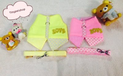 -สายรัดอกลายlove พร้อม สายจูง มี 2 สี เหลือง ชมพู