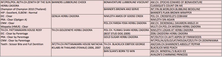 EIC : Clear by Parentage, PRA : Clear by Parentage (Optigen A), CNM : Clear by Parentage