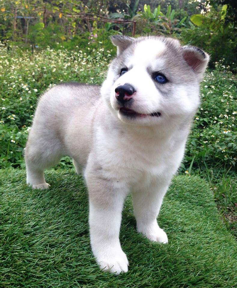 น้องหมาไซบีเรียน เพศเมีย สีขาวเทา ตาฟ้าคู่ โครงสร้างใหญ่ ขนหนา ราคาไม่แพง