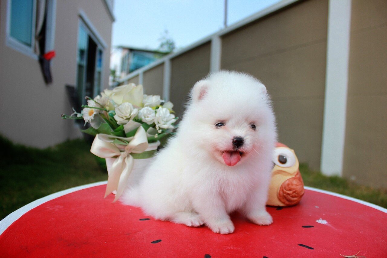 Pommyfarm จำหน่ายลูกปอมเมอเรเนียน คอกใหม่ สีขาว มีทั้งผู้และเมีย หน้าหมี ขนแน่น พร้อมใบเพ็ดดีกรี