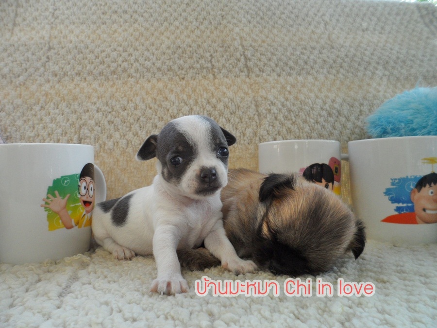 เด็กหญิงบลูม่า ชิวาวาขนสั้น สีขาว-บลู ไซส์เล็กๆ สินสอดกันเอง มีใบเพ็ด