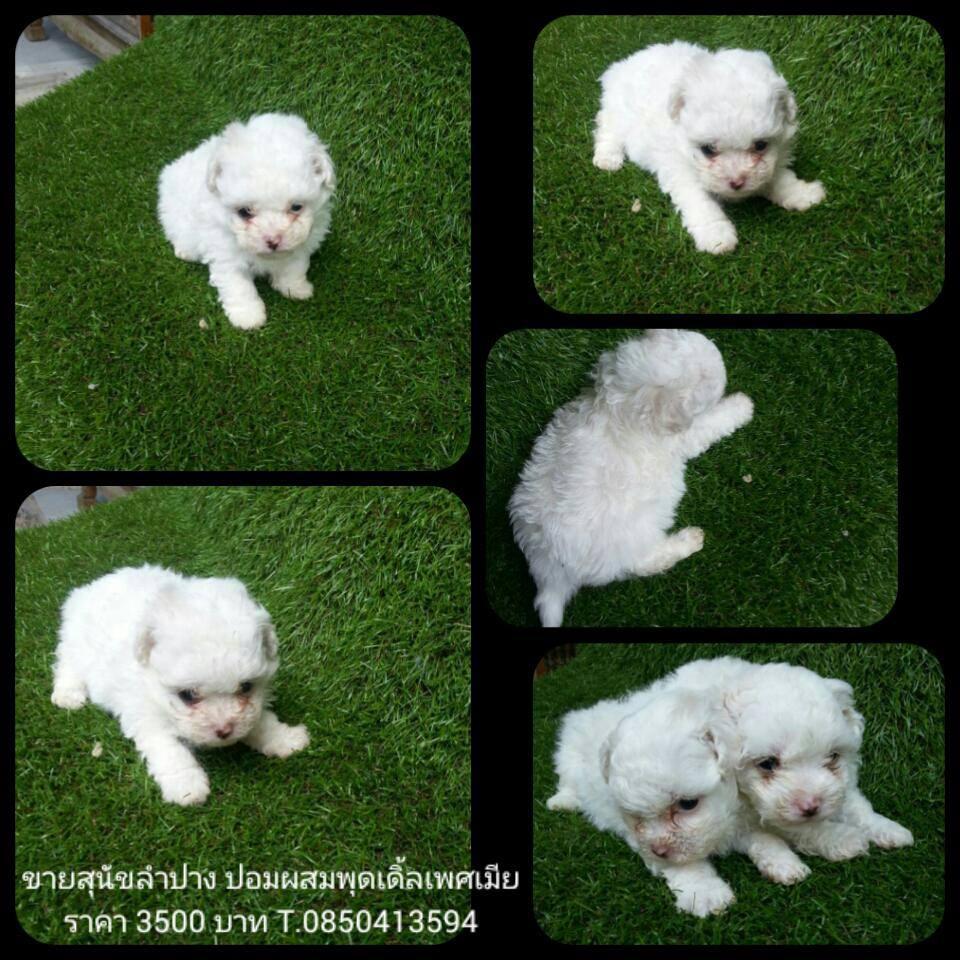 พุดเดิ้ลผสมปอมเพศเมียพร้อมย้ายบ้านนะจ๊ะเพียง 3500 จ๊ะขนขาวจั๊วเลยน้า