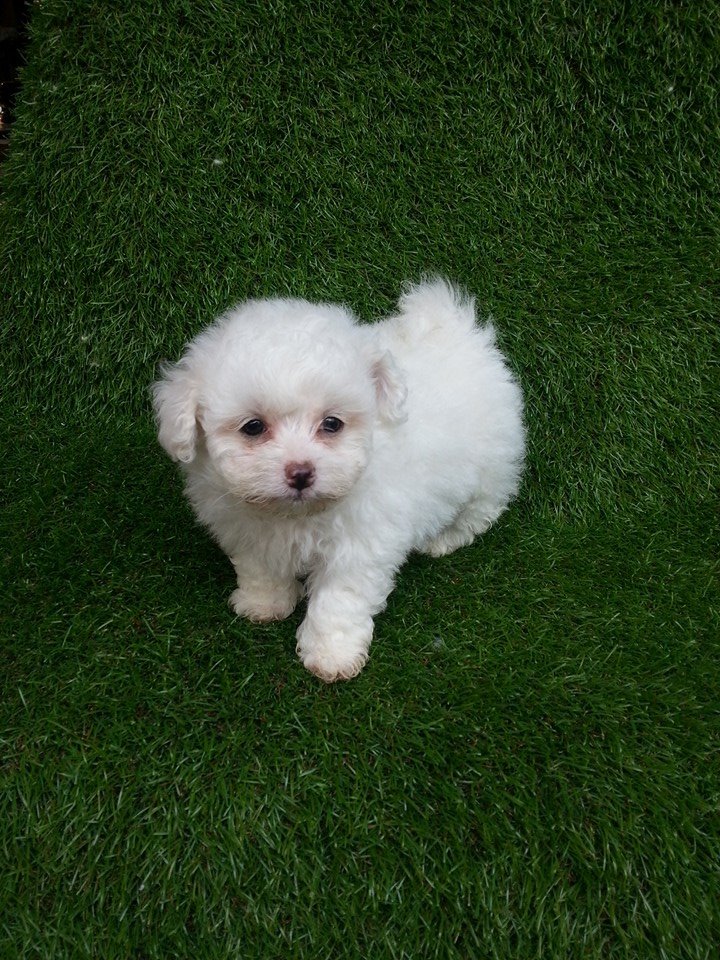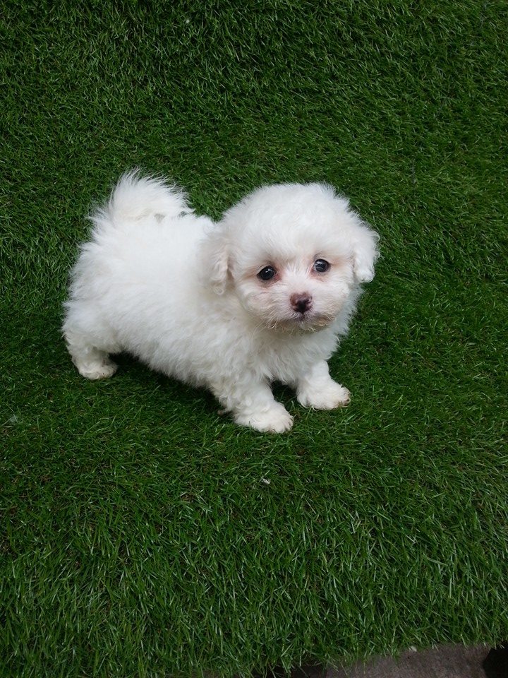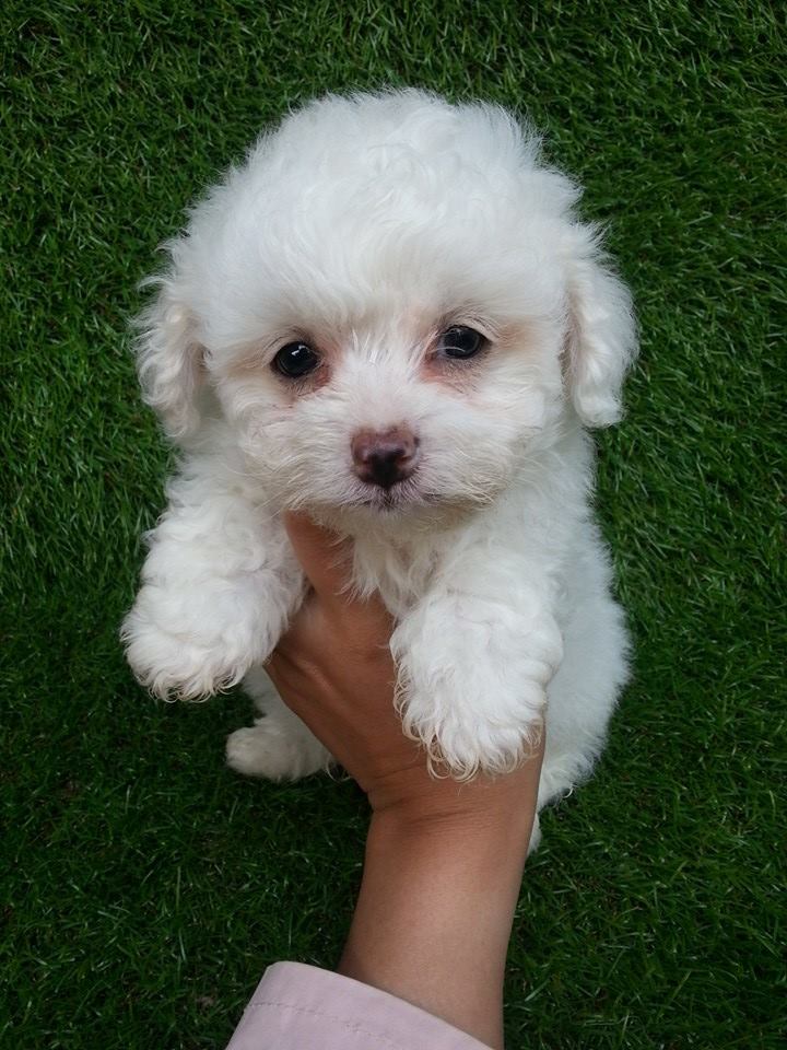 พุดเดิ้ลผสมปอมเพศผู้ตัวที่ 1 สีขาวจั๊วพร้อมย้ายบ้านเลยนะจ๊ะ