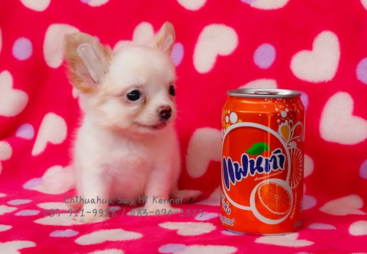 ชิวาว่าทีคัพ เพศผู้ สีขาว ขนยาว ตัวเล็กจิ๋วๆ By Chihuahua Say Hi Kennel