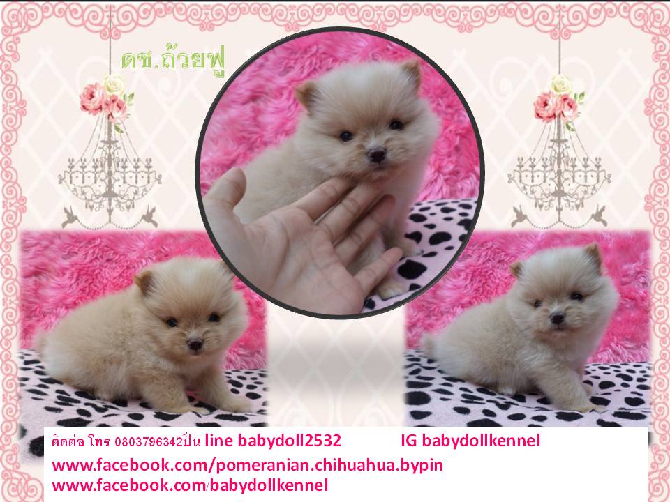 ดช.ถ้วยฟู ปอมเมอเรเนียนแท้ สีครีมหรือน้ำตาลอ่อนๆ สายไต้หวัน เพศผู้ ไซส์เล็กน่ารัก