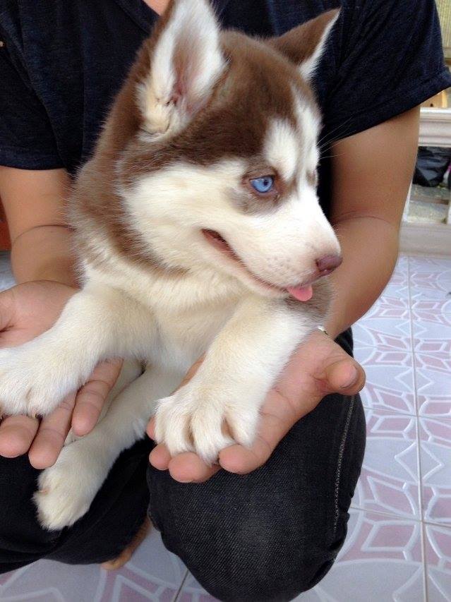 จำหน่ายไซบีเรียน ฮัสกี้ครับสีคอปเปอร์เพศเมียตาฟ้า 2 ข้างพร้อมใบเพด