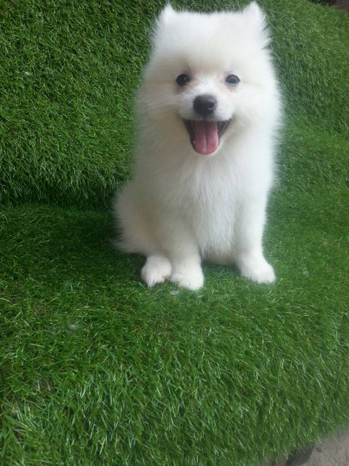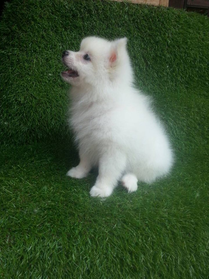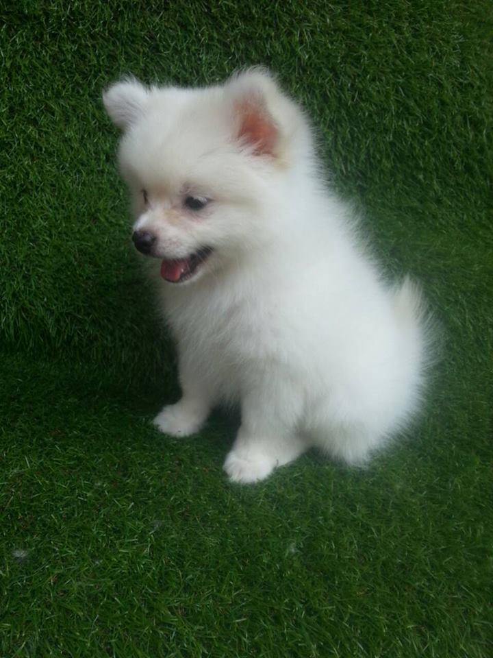 ปอมน้อยเพศผู้ตัวสุดท้ายจ๊ะสีขาว เกิด 5 มกราคม 58 น่ารักแข็งแรง ทานอาหารเองได้แล้วนะค่ะ พร้อมฉีดวัคซีนพร้อมย้ายบ้านจ๊ะ ลูกค้าที่อยู่ลำปางหรือจังหวัดใกล้เคียงมาดูเด็กๆได้ที่บ้านข้างเซนทรัลลำปางทางเรามีบริการจัดส่งทางรถไฟและเครื่องบินด้วยค่ะ